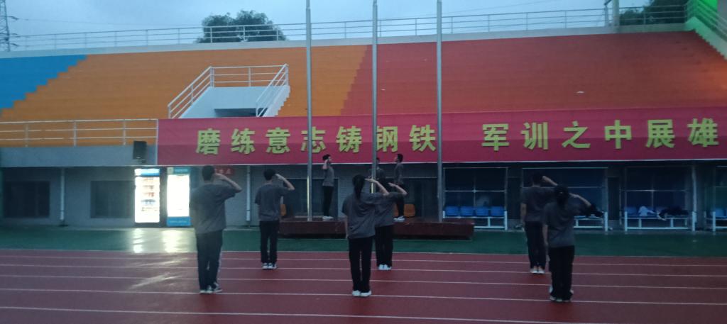 晨光熹微中,国旗护卫队的同学们身着统一的灰色T恤、黑色长裤,迈着铿锵有力的步伐沿红色跑道整齐行进。他们身姿挺拔,眼神坚毅,宛如一道移动的青春长城,彰显着新时代大学生的蓬勃朝气。