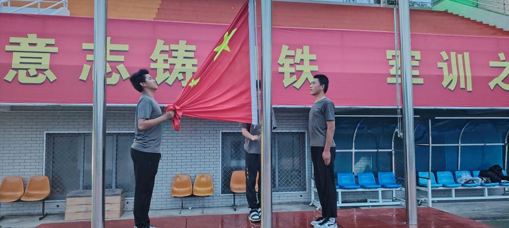 伴随着国歌的雄壮旋律,鲜艳的五星红旗冉冉升起、迎风招展。全体人员肃立致敬、高唱国歌,祝福伟大的祖国繁荣昌盛、国富民强。