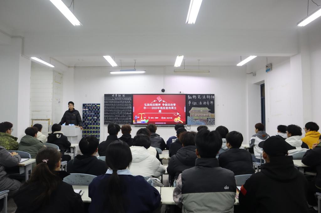 为深入学习贯彻习近平法治思想,落实全国宪法宣传周活动部署,引导青年学生增强宪法意识、弘扬宪法精神,我校于12月1日至7日开展了以“弘扬宪法精神,争做新时代法治青年”为主题的系列活动。活动覆盖秦州、麦积两校区,通过多元形式推动宪法学习入脑入心,营造浓厚法治校园氛围。