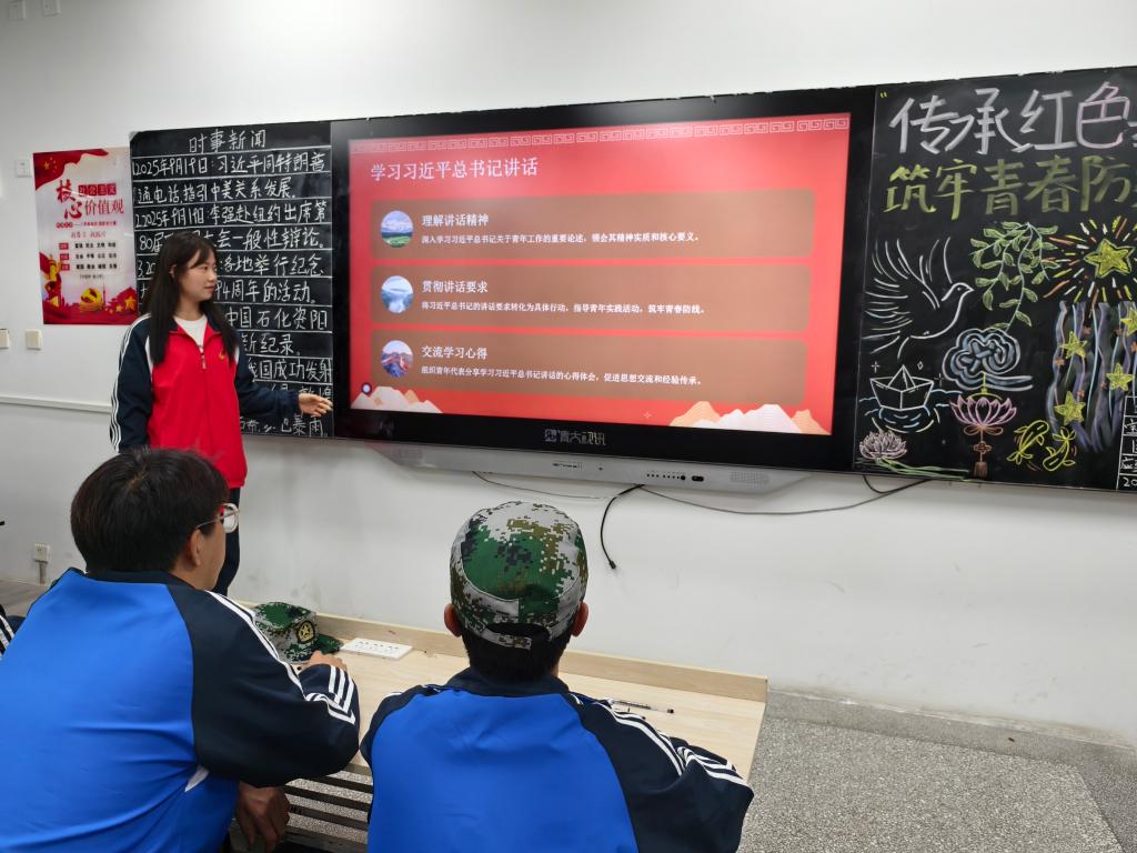 活动伊始,师生们通过视频学习了习近平总书记在纪念中国人民抗日战争暨世界反法西斯战争胜利80周年大会上的讲话,进一步增强了民族自信,展现了中国的力量。