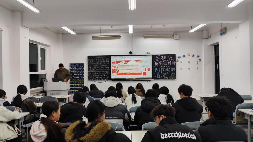 为深入学习宣传宪法知识,增强广大团员青年的法治意识与法治素养,我院于2025年12月3日在二教组织开展了“弘扬宪法精神,争做法治青年”主题团课。