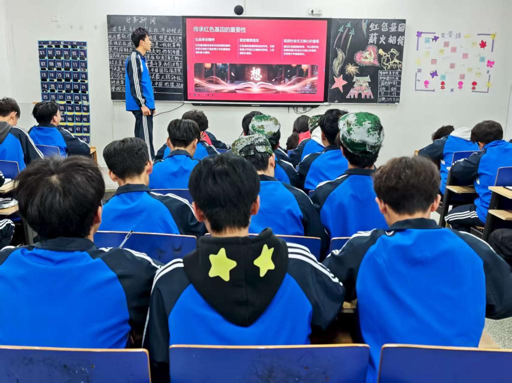 团课伊始,团支书以“红色基因的时代内涵”为切入点,通过播放革命先辈奋斗短片、讲述“两弹一星”精神故事,带领团员们回顾党领导人民在工业发展、科技攻关中的峥嵘岁月,阐明红色基因与智能制造领域“精益求精、攻坚克难”精神的内在联系。随后,围绕“筑牢青春防线”,课程从思想、学业、安全三个维度展开。在思想层面,强调坚定理想信念,抵制错误思潮;在学业层面,鼓励团员以红色精神为指引,攻克专业学习中的技术难题;在安全层面,结合智能制造实验室操作规范、网络信息安全等案例,提醒大家守住安全底线。